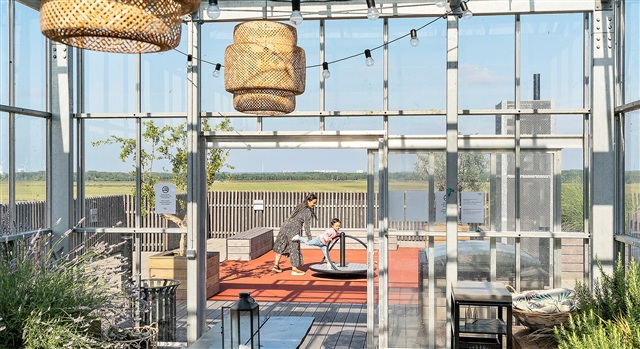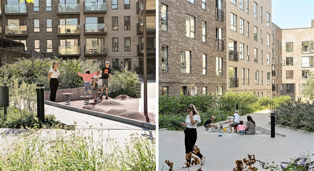 The building, known as Fælledkanten, is notable for its prime location directly adjacent to Kalvebod Fælled and features a spacious communal rooftop terrace covering 1,300 square meters. This rooftop space is thoughtfully designed with three large greenhouses containing fruit trees, seating areas, and an urban community garden. The rooftop is constructed on four levels, all accessible via elevator. Completed in 2019, the building was designed by the award-winning firm Danielsen Architecture, demonstrating meticulous attention to detail to provide an ideal environment for contemporary family living. It incorporates functional, timeless design with energy-efficient solutions. The courtyard offers tranquil spots with playgrounds that invite both relaxation and play. Beneath the building lies an underground parking garage, where private parking spaces can be rented. Additional amenities include bicycle parking, storage rooms, a video-monitored entry system, and elevator access.