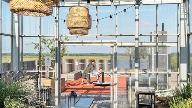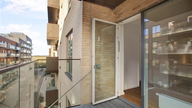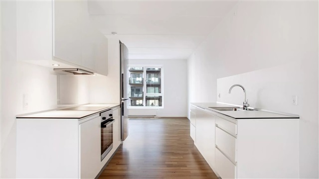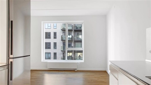 Situated in a prime location facing Kalvebod Fælled, the building known as Fælledkanten features a spacious communal rooftop terrace spanning 1,300 square meters. This rooftop includes three large greenhouses housing fruit trees, seating areas, and an urban shared garden. The roof garden is designed across four tiers, all accessible via an elevator. Completed in 2019 and designed by the award-winning firm Danielsen Architecture, the property delivers carefully thought-out modern living spaces optimized for family life, incorporating energy-saving technologies within a functional and timeless aesthetic. Outdoor areas consist of small retreat spots and play zones encouraging both relaxation and recreation. Beneath the building lies an underground parking garage offering private parking rentals. Additional amenities include bicycle storage, storage units, video-monitored intercom systems, and elevator access.