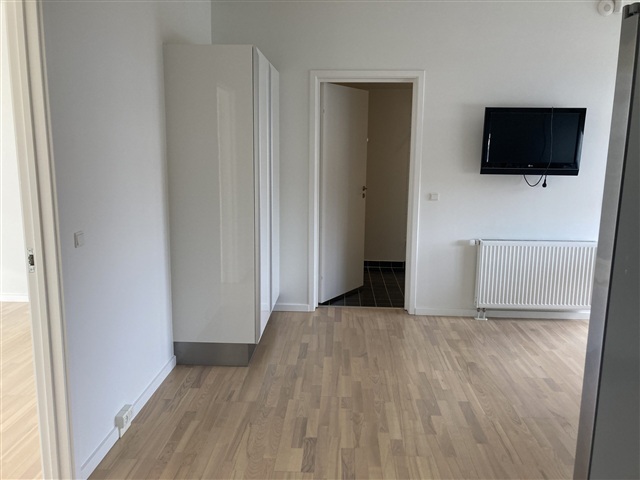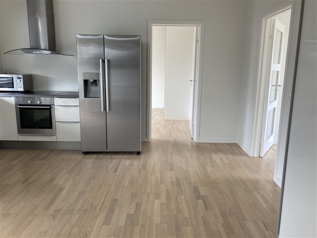 Located on Roesskovsvej in the Bolbro district, this well-maintained 80 m² rental apartment offers convenient access to Odense city center as well as nearby educational institutions such as Odense Seminarium, OUH, and the University. The unit features a private balcony accessible from within the apartment.The accommodation includes a spacious, modern kitchen and living area equipped with a flat-screen TV, an American-style refrigerator/freezer with ice maker, and a microwave. All appliances are stainless steel Siemens models, ensuring quality and durability. The bathroom is attractive and practical, featuring a shower enclosure and a combined washer-dryer.