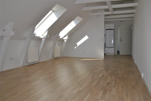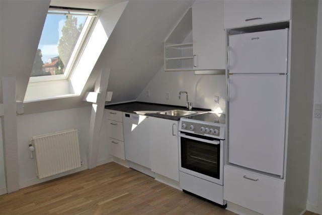 Bright and lovely attic apartment (sloping walls) with a very central location in Viborg, close to the pedestrian zone, train station, Midtbyens Gymnasium, shopping opportunities, etc.