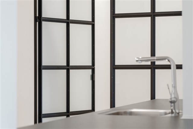 The kitchen is large and well-appointed, offering ample cabinet space and fully integrated major appliances, including a dishwasher and a wine cooler, all from the brand Miele. From the kitchen, there is access to an expansive living room that comfortably accommodates both a dining area and a lounge space.