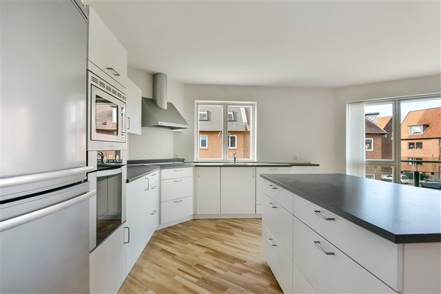 Exciting apartment located in "Siggaarden" on Sjællandsgade in Herning - close to the city, the train station, HerningCentret etc.The apartment was built in 2012 and is in good condition with 3 bedrooms, living room/kitchen in one and 2 bathrooms (one of which has a spa). In addition, a balcony. There are good parking facilities and a covered entrance to the apartment - as well as an elevator and good storage room in the basement.