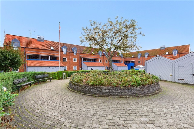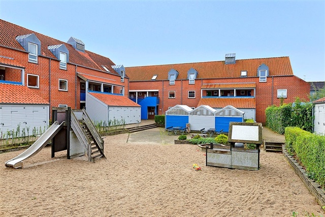 The apartments are situated in the heart of Langå, surrounded by green spaces nestled within the residential complex, along with a well-maintained communal playground designed for both play and relaxation. On the ground floor, the units are single-level and include private gardens, whereas the first-floor residences span one and a half levels and feature balconies. Each apartment offers the option to install a dishwasher. Every home is equipped with a fridge-freezer, and a storage shed is allocated to each dwelling. Residents also have access to a modern communal laundry facility.Langå provides convenient shopping options, schools, kindergartens, a train station, bus services, and a variety of shops. The town also hosts a golf club and sports facilities. In 2024, new windows as well as entrance and terrace doors were installed throughout the development.
