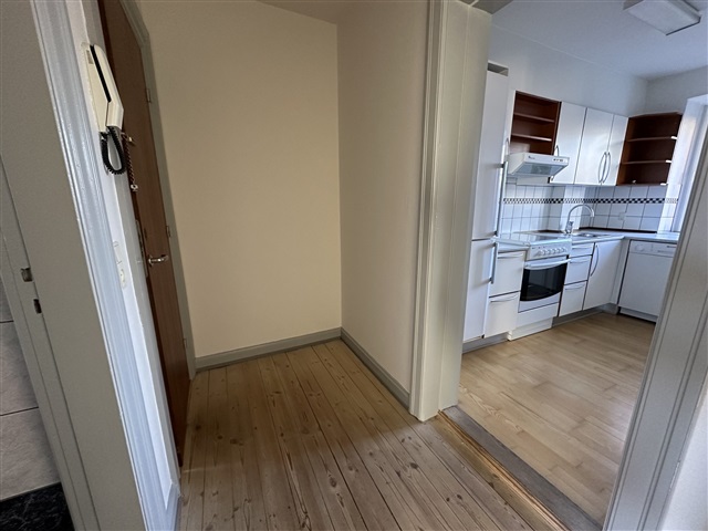 Located on the ground floor in a sought-after neighborhood, this attractive two-room apartment spans 58 square meters. The unit features a modern kitchen equipped with a full range of built-in appliances, including a dishwasher. The living room is bright and inviting, complemented by a spacious bedroom. The bathroom is tiled and includes a shower. Additional features include beautifully sanded wooden floors, an intercom system, and access to a shared laundry facility. The apartment is conveniently situated close to various shopping options such as Coop365 and Super Brugsen. The monthly rent is DKK 5,948, with additional charges for heating of DKK 600 and water of DKK 400. A deposit of DKK 17,844 is required.