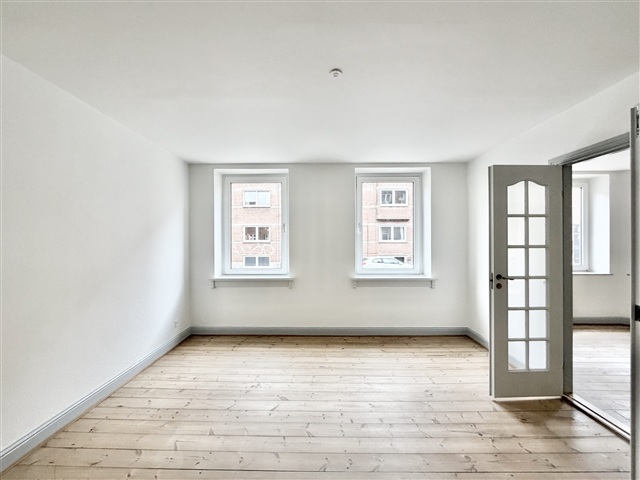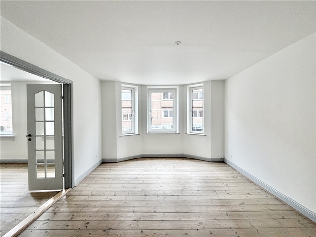Situated in a well-maintained and attractive building on Kochsgade, close to Odense Train Station, this lovely three-room apartment of 87 m² is available for rent on the ground floor.The unit features a modern kitchen equipped with a full range of white goods, including a dishwasher. The bathroom is elegantly tiled and fitted with a shower. There are two spacious, interconnected living rooms, one containing a canopy and a French door, alongside a generously sized bedroom.