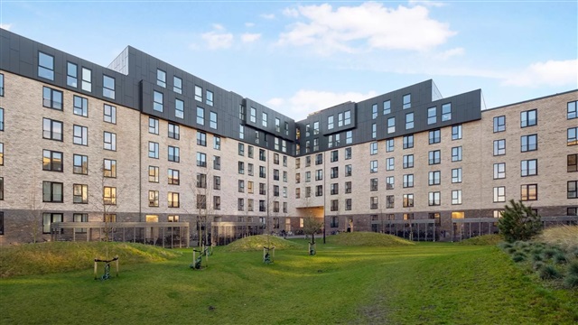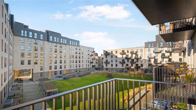 The property known as Øresund Park is composed of five buildings interconnected by spacious, green courtyards, allowing easy, open access between the structures. These shared outdoor spaces offer sunny recreational areas suitable for social gatherings, play, or quiet reflection. Completed in 2018 and designed by Henning Larsen Architects, the development features brick construction that incorporates variation through color and facade elements, resulting in an attractive and diverse exterior. Considerable attention has been given to sustainability and energy efficiency; for example, solar panels are installed on the roof, and all apartments comply with the A2020 energy certification standards. Beneath the complex, an underground parking garage offers the option to rent a private parking spot. Additional amenities include an elevator, waste chutes, and a video intercom system.