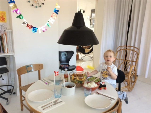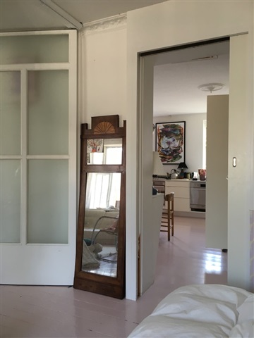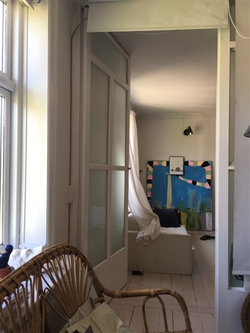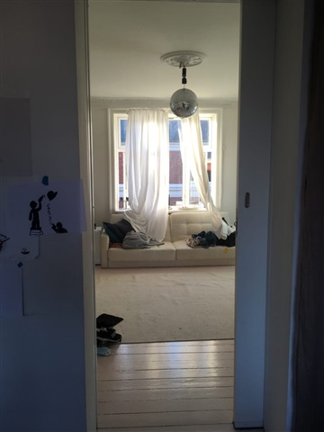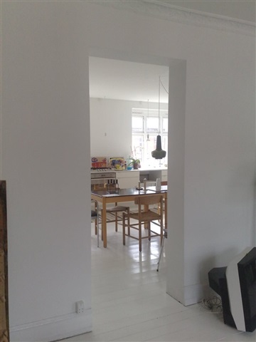 Shared space is large kitchen with dining table and sofa + access to large south faced10m2 balcony with sun from 08.00-18.00 during high summer. And bathroom and livingroom.