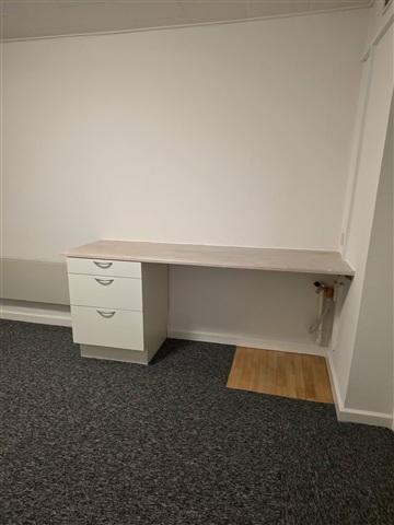 Til leje samlet 67 m2. Lille rækkehus på 37 m2 + 30 m2 forstue/kontor/vaskerum. For enlig eller par uden børn. 200 m2 have med terrasse 4850,- kr.