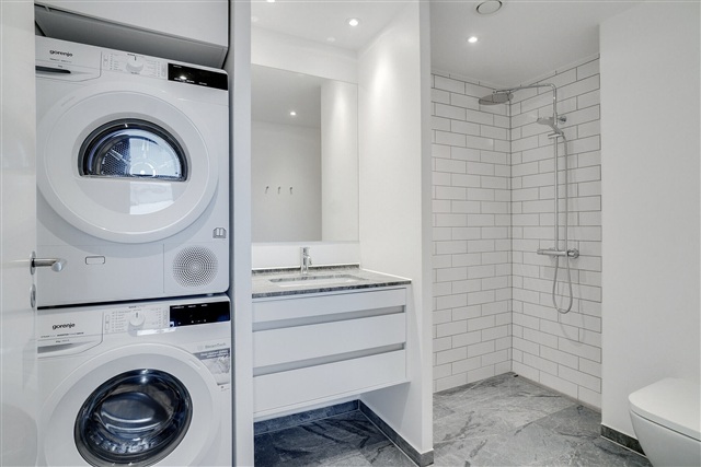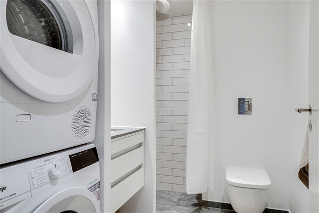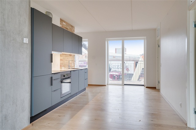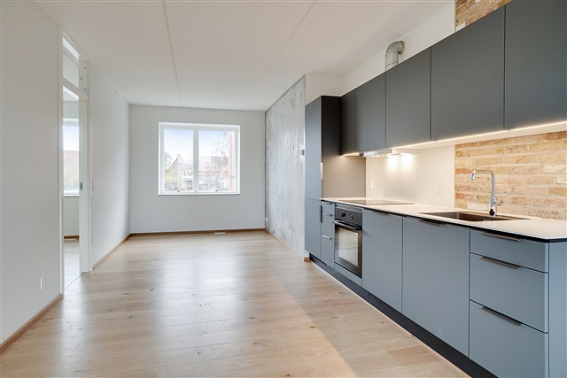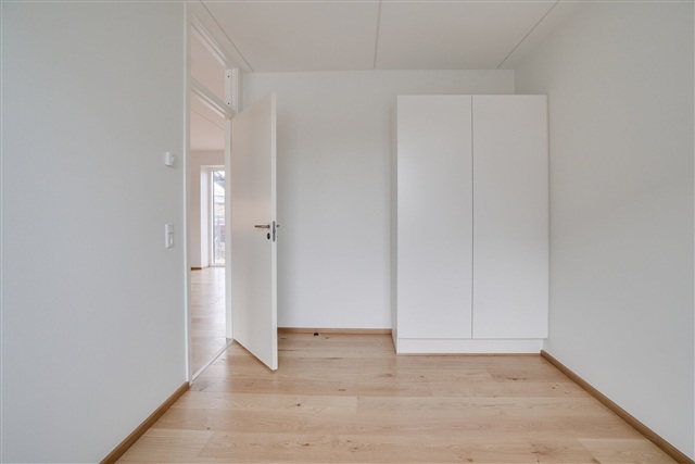 In Thriges Kvarter, great care has been taken with every detail. The goal was to create rental apartments that foster a pleasant environment and stand apart from conventional rental developments. High standards have been established, particularly regarding quality and durable solutions, which is reflected in the choice of materials. Residents here benefit from thoughtfully designed homes featuring oak flooring, kitchens from HTH, spacious bathrooms adorned with elegant natural stone, and balconies. Furthermore, the apartments are equipped with modern wiring to support fast and reliable fiber-optic internet connections.The homes in Thriges Kvarter emphasize honest, high-quality, and natural materials like oak and natural stone, known not only for their aesthetic appeal but also for their longevity. Some of the apartments incorporate reclaimed bricks in selected walls, adding a distinctive industrial character. Parking for cars is available at Thrige, and there is bicycle parking both outdoors beside the building and in the basement. The building is also fitted with an elevator for convenient access.