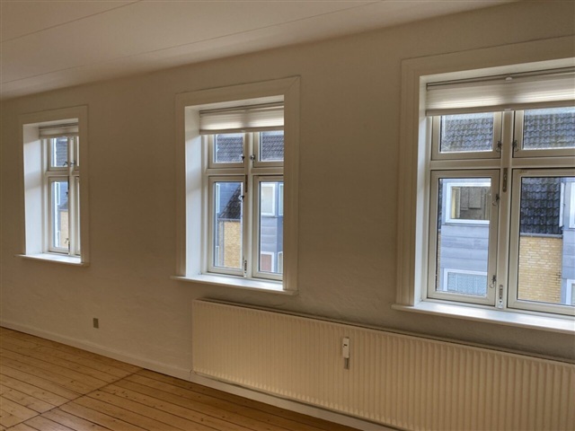 Situated on the second floor, this apartment spans 62 square meters. It features a bright and inviting living room with a view overlooking Kayerødsgade. The kitchen is well-lit and equipped with a laminated countertop, a distinctive checkered floor, white cabinetry, a glass splashback behind the stove, a washing machine, a combined fridge and freezer, as well as spotlights for illumination. The bathroom includes a shower enclosure, tiled walls, and a built-in cabinet with a mirror. A spacious bedroom faces the property's courtyard and offers ample wardrobe space.Residents have access to bicycle parking located in the backyard of the building. The entrance is secured with a locked stairwell, and the apartment is fitted with an intercom system. Pets are allowed upon agreement. For further information or to arrange a viewing, please feel free to get in touch.