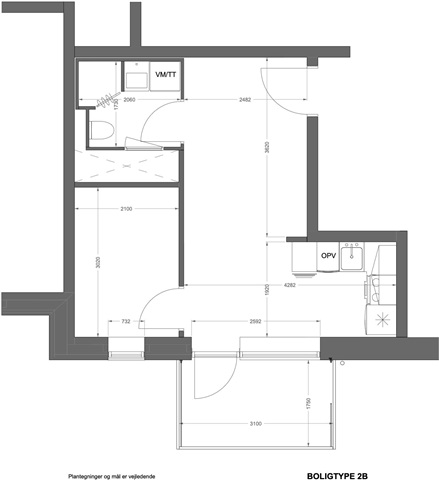 2 værelses lejlighed på 42 m2
