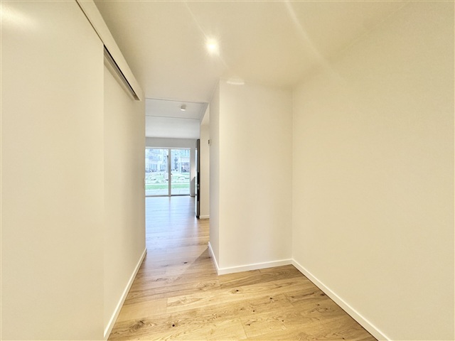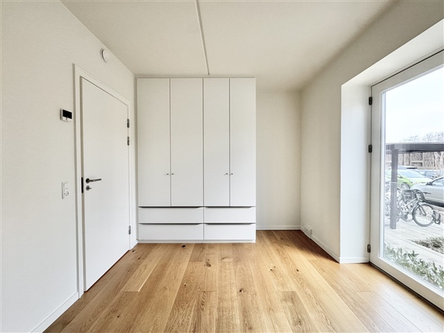 The apartment features a stylish high-gloss kitchen equipped with a full set of Miele appliances. Among these are a dishwasher and a wine cooler designed to store both red and white wines. The kitchen seamlessly connects to the living room, offering ample space for a dining table as well as a seating area. From this combined space, there is access to a spacious balcony.The bathroom includes a wall-mounted Grohe toilet, a cabinet, and a mirror from Duravit, along with a shower area fitted with a luxurious Grohe rain showerhead. Additionally, the bathroom is outfitted with a Miele washing machine and tumble dryer, complemented by a high-quality Bluetooth speaker from B&O. The bedroom provides a comfortable and well-sized sleeping area.