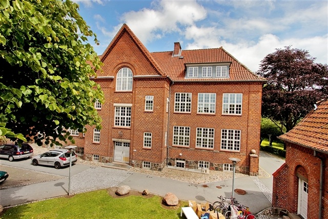 The housing complex of Fyn Housing Association, Section 53, is situated in a historic school building on Odensevej that has been transformed into a variety of residences. The accommodations include single-level homes, two-story low-rise units identified as numbers 24 G, K, and H, along with two-level apartments numbered 24 A through F, spread across different wings of the building. Originating from 1812, the structures have been carefully maintained and renovated over the years, preserving their traditional charm. The surroundings feature an inviting atmosphere highlighted by a flagpole, generous green spaces with picnic tables, and a playground. Residents have access to a shared bicycle shed, and each home comes with its own basement storage room. Pet ownership is permitted exclusively in units 24 A-F and 22 C, allowing one dog or one cat; pets are not allowed in the other apartments. Each unit is equipped with a modern, open-plan kitchen adjoining the living area, complete with a refrigerator-freezer, stove, and extractor hood. The bathrooms are designed with light colors and have space for installing a laundry column. Additionally, apartment 24 K 1 includes a small balcony, while 22 B 1 offers a French balcony.Located in Ringe, this property strikes a fine balance between urban amenities and natural surroundings. The town boasts a charming main street hosting a variety of shops, including grocery stores and eateries. Ringe supports a lively community life with cultural and recreational facilities such as a cinema, swimming pool, athletics stadium, and leisure center. Events like runs take place around the picturesque Ringe Lake, which also offers pleasant walking paths and a rich birdlife. The town appeals especially to families, providing numerous childcare options including a nature daycare, alongside several schools dispersed throughout the area. Convenient motorway access is close by, making it about a 15-minute drive to Odense or Svendborg. For those without a car, regional trains from Ringe station provide easy connections to both cities.