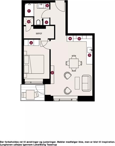 This well-planned two-room apartment features a generously sized living room that opens onto a furnished balcony facing south, allowing for plenty of sunshine. Adjacent to the living area, there is a contemporary white Invita kitchen offering ample cabinet space and equipped with Bosch Siemens appliances, including a dishwasher. The bedroom contains built-in wardrobes, while the spacious bathroom is inviting, featuring beige tiles on the floor and in the shower area, complemented by underfloor heating. The bathroom also includes a molded marble-line sink, a wall-mounted toilet, and a stacked washer and dryer unit. Throughout the apartment, Natural Oak Tarkett strip parquet floors with a matte finish adorn the rooms. A storage room is conveniently accessible directly from the apartment. Large, elegant windows throughout allow for abundant natural light. Residents of Lynghaven benefit from a location just five minutes from Hedehusene Station, with a train connection to Copenhagen taking only 23 minutes. Pets may be allowed upon application for all rental properties within this development.Please note that the photographs shown are from a model apartment and do not depict the exact unit; they aim to provide an impression of the style and material choices. The floor plan should be consulted for the precise layout. For further information or to arrange a viewing, please contact the rental team or book directly.