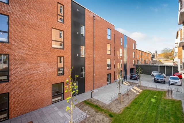 Located in the heart of Randers, Boligselskabet Udlejer Randers completed the construction of 32 public quality apartments in 2021. These residences offer a bright and contemporary living experience, featuring walls and ceilings painted white and floors finished with wood parquet. The kitchens, sourced from Invita, are equipped with drawer cabinets, ceramic cooktops, ovens, and range hoods, while select units include a combined refrigerator and freezer. Generous floor-to-ceiling windows throughout each apartment ensure ample natural light and pleasant views. Additional outdoor living spaces are available in the form of balconies or terraces. Residents also benefit from storage rooms either within a shed or the basement. Included in the rent is access to an integrated parking garage.The housing complex occupies a central site bordered by Markedsgade, Bredstrupsgade, and Mariagervej. It comprises two main buildings: a four-story elongated building housing 15 apartments and a six-story tower block containing 17 apartments. The exterior features dark red brick with contrasting dark window frames and white balconies, combining to present a sophisticated aesthetic. Constructed with a focus on quality, the property maintains low energy consumption. Accessibility is prioritized through step-free entrances and the installation of elevators in each of the three stairwells, serving every level. Between the two buildings, a welcoming green communal area has been developed, providing space for residents to enjoy activities such as playing, picnics, and barbecuing.