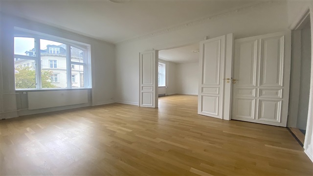 The apartment features an entrance hallway that provides access to every room within the unit. Facing Gammel Kongevej, there are two spacious en suite living rooms, one of which is suitable for use as a bedroom, along with an additional room also overlooking Gammel Kongevej. Towards the courtyard side, a large bedroom is situated. A newly renovated bathroom includes a shower, as well as a washing machine and a dryer. The kitchen has been updated to a dining kitchen with ample cupboard space and a generous dining nook. This building is located on the sought-after Gammel Kongevej, an area known for its excellent restaurants, grocery stores, and shopping opportunities. The nearest Metro station, Frederiksberg Alle Metro, is within a short walking distance.Please note: the apartment is exclusively rented to expats.