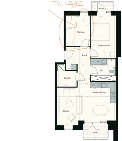 It is a lovely newly built apartment in Hedehusene/Nærheden of 88 square meters. The apartment has 2 good rooms, a large kitchen-dining room with a dishwasher, a spacious bathroom with both a washing machine and dryer, and 2 nice balconies overlooking the courtyard.