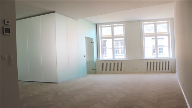 The lease is furnished with an entrance hall where there is access to a nice large bathroom with bathtub, shower section with 2 showers as well as washing machine and dryer. From the entrance hall there is access to a living room that is connected to a nice kitchen, where there is a good dining area. The kitchen contains all appliances, including dishwasher. There is a good large bedroom with glass walls, which means that the beautiful light in the apartment is maintained. There are beautiful parquet floors throughout the home. The property is serviced by a lift, there is a door phone system with a camera and there is access to a common courtyard and roof terrace. The property is located in the heart of Copenhagen, by Højbro Plads, and thus close to all the best that Copenhagen has to offer in terms of shopping, restaurants and cafes. Few minutes walk to Metro station.