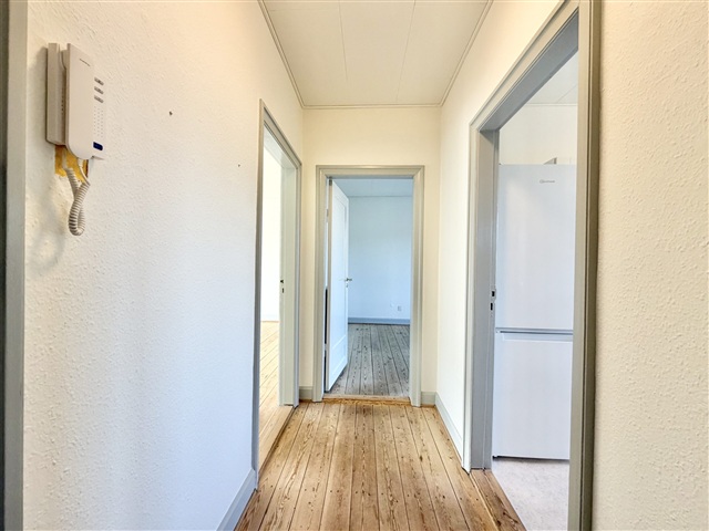 This charming two-room apartment, measuring 66 square meters, is available for rent on the second floor and is situated in close proximity to both the train station and Åløkkeskoven.The unit includes a well-equipped bathroom with a shower, alongside a tidy kitchen fitted with appliances. A spacious and bright living room features a sofa, complemented by a comfortable bedroom. Additional amenities comprise an intercom system and shared laundry facilities located in the basement.
