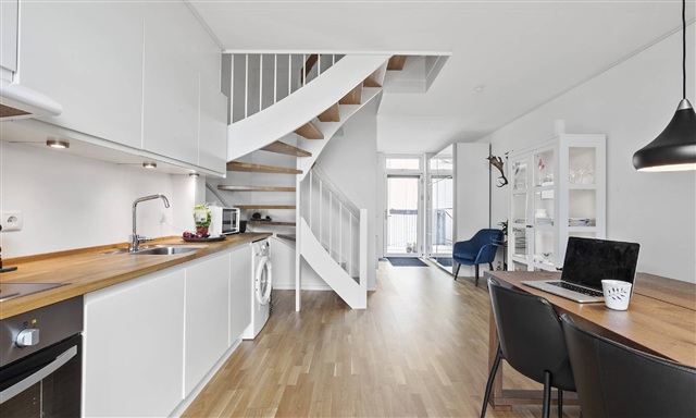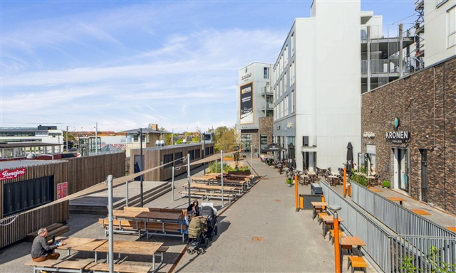 The residences are thoughtfully designed to emphasize both natural light and scenic views. Each unit features expansive windows, attractive parquet flooring, bright HTH kitchens, and spacious bathrooms. Several apartments include either a terrace or a balcony. The housing options range from one to five rooms, with some homes spanning multiple levels.Located atop the Kronen Shoppingcenter in Vanløse, this development comprises 118 contemporary apartments that offer peaceful surroundings, scenic vistas, and green courtyard spaces. The residences vary from townhouses suitable for larger families to studios perfect for younger individuals. Arranged in clusters, the homes foster a sense of community and facilitate an active environment for both children and residents.