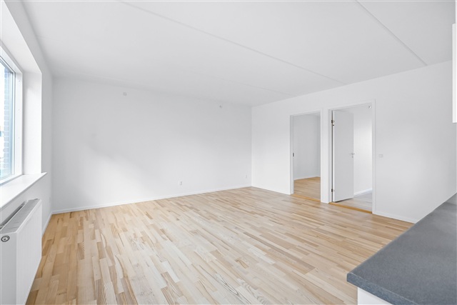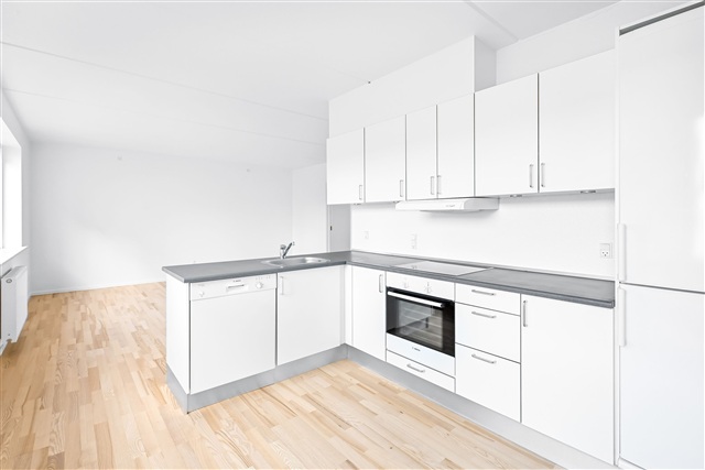 Located in the very center of Silkeborg, this charming three-room apartment spans 83 square meters and is available for rent. The layout includes an entrance hall, a main bedroom, and an additional room, complemented by a stylish white Invita kitchen that seamlessly connects to the living area.The bathroom is equipped with underfloor heating and provides space for both a washing machine and a tumble dryer. Throughout the apartment, wooden floors add warmth and character.