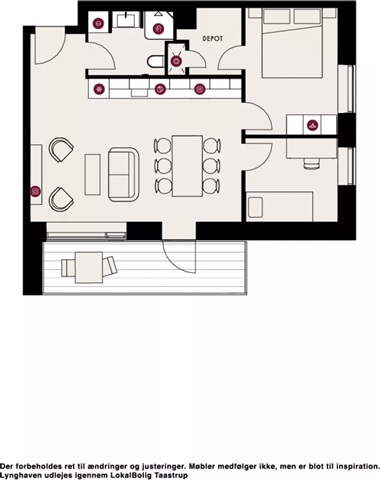 This three-room apartment offers a practical layout featuring a generously sized living room that opens onto a west-facing, sunlit balcony suitable for furnishing. Adjacent to the living area is a contemporary white Invita kitchen, equipped with ample cabinetry and Bosch Siemens appliances, including a dishwasher. The master bedroom includes built-in wardrobes, while a second room can serve as either a child's bedroom or a home office. The spacious bathroom is welcoming, tiled in beige on both the floor and within the shower area, and benefits from underfloor heating. It is fitted with a molded marble-line sink, a wall-mounted toilet, and a combined washer-dryer unit. Throughout the apartment, elegant Tarkett laminate flooring in Natural Oak with a matte lacquer finish enhances the ambiance. Conveniently accessible from the apartment is a storage room. Large, attractive window sections ensure excellent natural light in every room.Pet ownership is possible upon application in all rental properties. Situated just five minutes from Hedehusene Station, Lynghaven offers swift access to Copenhagen, reachable by train within 23 minutes.
