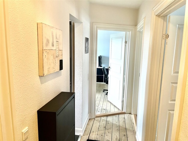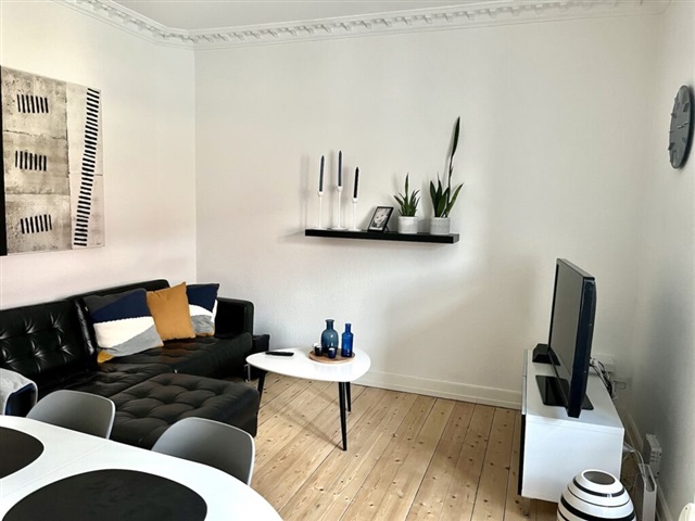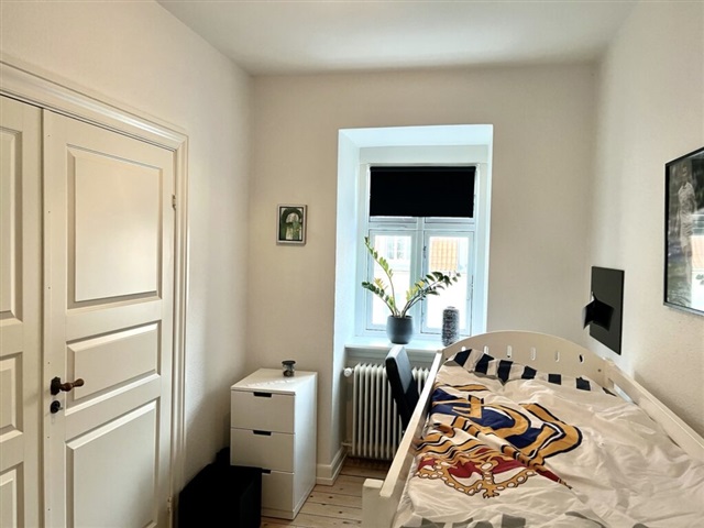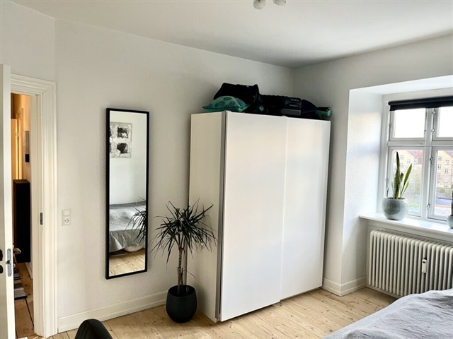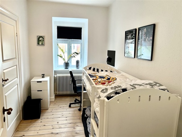 This charming three-room apartment is situated in the sought-after Øgadekvarter neighborhood. Upon entering, you are greeted by a spacious hallway that provides access to every room within the apartment. The unit features a modern bathroom equipped with underfloor heating and a recently updated Invita kitchen. There is a generously sized bedroom, a bright living room, and an additional room that can function as a dining area or an extra bedroom.The apartment is rich with original architectural elements, including decorative molding, panel doors, and beautiful hardwood floors throughout. The building offers excellent communal facilities such as a well-maintained laundry room and multiple bicycle storage basements. Additionally, the apartment includes a parking license for the shared courtyard.