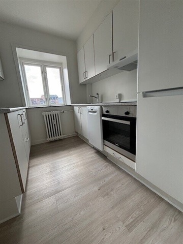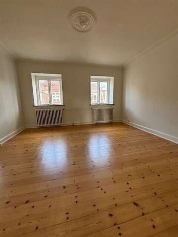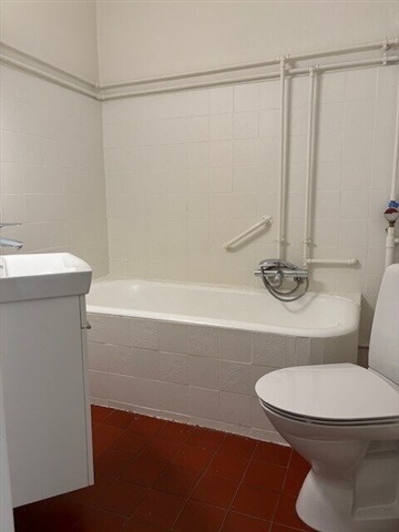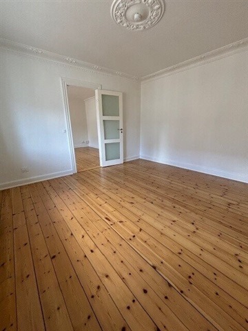 This well-located and easily shareable three-room apartment features a spacious hallway that connects the rooms. There are two attractive living rooms separated by an elegant French door. The bathroom is in good condition and includes a bathtub. A completely new kitchen comes equipped with a dishwasher. The bedroom has direct access to a small balcony. Additional amenities include a laundry cellar and an intercom system.