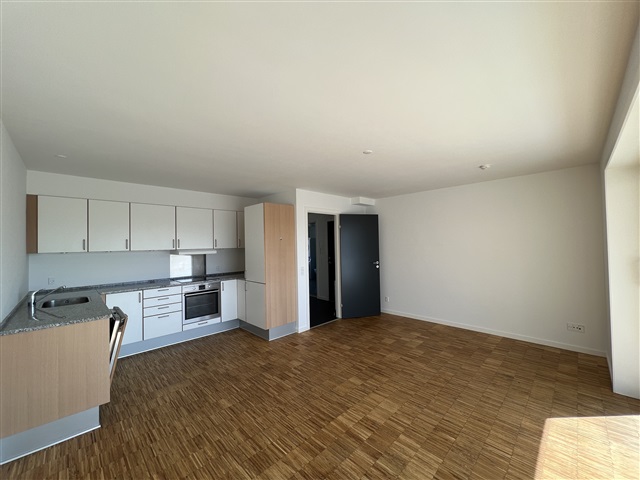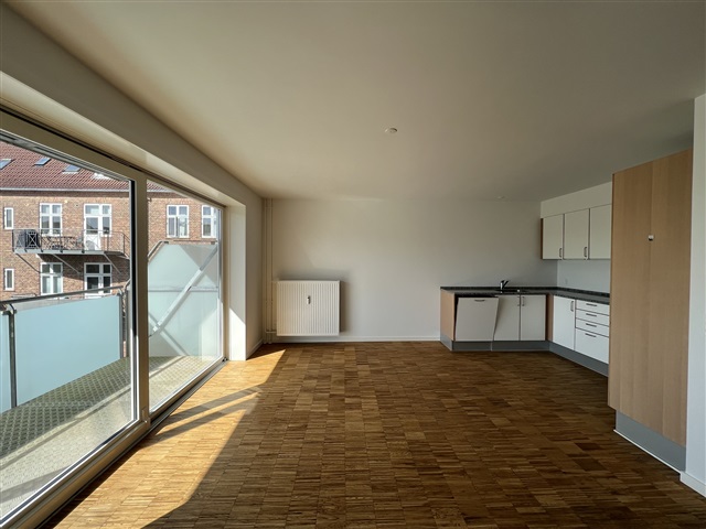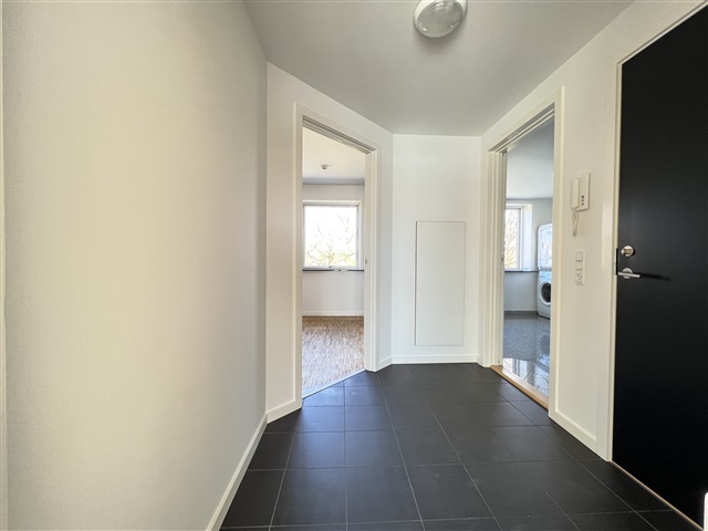 The apartment has been beautifully renovated and features an open-plan kitchen and living area. The bathroom is modern and includes a stacked washer and dryer unit. The bedroom comes equipped with built-in wardrobes, while a small entrance hall provides access to the rest of the home. Additional amenities include a balcony, a basement storage room, and an intercom system.