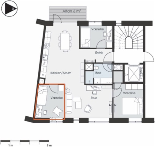 Shared costs for electricity, internet, and communal cleaning supplies amount to 450 DKK per month, which is invoiced separately from the rent. The apartment boasts lovely views in every direction, with particularly striking sunsets visible from the balcony.