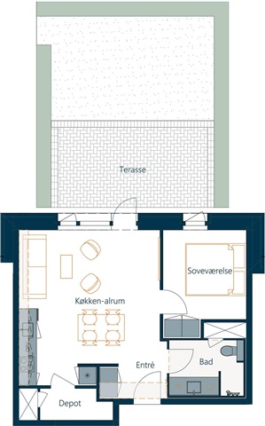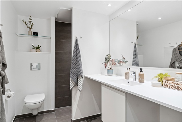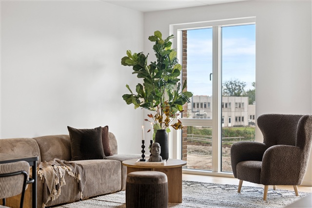 The apartments in Bakkernes range from two to four rooms, offering living spaces suited for singles, families with children, or seniors alike. Carefully designed with contemporary layouts, these homes maximize the use of available square meters. At the center of each residence lies a spacious kitchen-dining area that opens directly onto a private balcony or terrace, providing views oriented either to the south or west. Additionally, residents have access to convenient parking within one of the two parking garages located in the neighborhood.