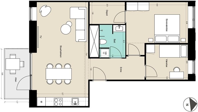 This beautiful, bright apartment in the area invites you to both coziness and togetherness. The home has beautiful parquet floors with underfloor heating in all rooms. The kitchen is a simple and modern white Svane Deco kitchen with quality white goods including a dishwasher from Electrolux. In the bathroom you will find a washer/dryer. The storage room is designed into the square meters of the homes, either in the form of a cupboard or a smaller room that you can transform into your own walk-in closet. Beautiful outdoor spaces All homes have their own balcony or terrace that faces the green heart of the building: the courtyard, where you can create a beautiful outdoor space in the home with cozy furniture, cushions and pots. As well as enjoy the evening sun or a good meal. In the green common room you can feel the cozy atmosphere of the surrounding allotments with everything from bird boxes, insect hotels to rainwater barrels and fruit trees. Let the kids loose on the playground or enjoy a glass of wine over a game of petanque with the neighbors. Use the greenhouse in the courtyard and on the shared roof terrace to extend the summer and watch the seasons change. Here you can use your green fingers to get tomatoes, herbs and vegetables to sprout. Everything has been thought of here. A free parking license is included per home. TDC provides antenna and fiber, which you can connect to or freely choose another provider. As a resident, you also have access to a common room with a kitchen and the common roof terraces. Pets are welcome. It is possible to get permission for one pet up to 25 kg. NOTE: Floor plans are indicative and reservations are made for any discrepancies. The pictures are from our two sample homes and may therefore differ from the specific home.If you want to read the description in its original language that is also possible. Read original description