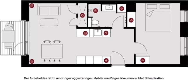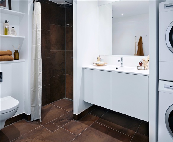 This two-room apartment features a spacious living area that opens onto a balcony facing west. Adjacent to the living room is a sleek, modern Invita kitchen finished in white without handles, paired with gray CoreStone countertops and ample cabinet storage. The kitchen is equipped with Gram appliances, including a dishwasher. The bedroom includes built-in wardrobes. The bathroom is generously sized and inviting, showcasing elegant dark tiles on the floor and within the shower, along with underfloor heating. It is furnished with a molded sink, a wall-mounted toilet, and a stacked washer and dryer unit. Oak lamella parquet flooring enhances the appeal throughout the apartment. Natural light fills the space through large, beautifully designed windows. Conveniently, the apartment includes access to a private storage room. Heating is provided by underfloor heating. Pet owners may apply to keep one pet in any of the available rentals.Situated in a sought-after neighborhood of Høje Taastrup C, the residence is part of a community with a clear vision to cultivate a vibrant and appealing environment focused on thoughtful solutions that ensure a safe daily life. Residents of Rubinhaven benefit from excellent proximity to Tåstrup Station, which offers train connections to Copenhagen in about 25 minutes. Furthermore, the popular City 2 shopping center is merely a five-minute walk away.