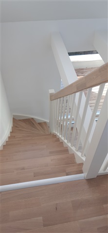The large kitchen/family room is built with a pitched ceiling, so there is a fantastic amount of light in the apartment. There are beautiful light oak parquet floors everywhere, and there is underfloor heating throughout the apartment.