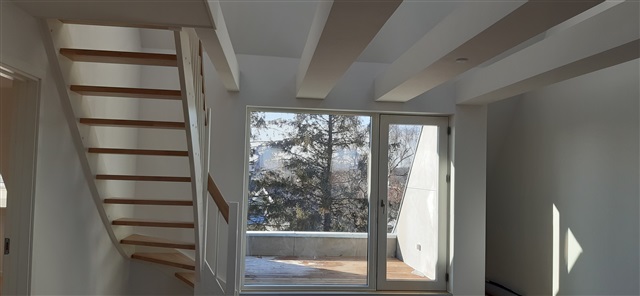 Enjoy the view of Roskilde Fjord from your own private terrace!The apartment, which is on two levels, is built at the top of one of the former hospital buildings, only about 15 minutes walk to the station and to Sillebroens Shopping Center.