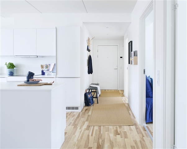 This three-room apartment features a spacious living area that opens onto a sun-drenched, west-facing balcony suitable for outdoor furniture. Adjacent to the generously sized living room is a sleek, modern Invita kitchen in white without handles, offering ample cabinet storage and equipped with Siemens appliances, including a dishwasher. The property includes one bedroom with built-in wardrobes and a second room that is sizeable and provides access to a storage room with a window. The bathroom is finished with light beige tiles on the floor and inside the shower area, which is equipped with a large shower cabin. The layout is efficiently designed to incorporate a washing machine, dryer, storage solutions, and a wall-mounted toilet. High-quality laminated parquet flooring runs throughout, complemented by abundant natural light from large, attractive window sections. The apartment also includes easy access to an internal storage space and benefits from underfloor heating. Pet ownership is permitted upon application in all rental units. Located in Espergærde, the residence is near excellent shopping options at the Espergærde Center and the public library. Espergærde Station is conveniently within walking distance from TriumphByen. The surrounding nature is exceptional; Egebæksvang Forest offers ideal settings for walking or running. Just beyond the forest and across Strandvejen lies the Espergærde Harbor, featuring two restaurants, a popular fish house, and an ice cream stand.Please note that the photos shown do not depict the actual apartment but are images from a model home intended to convey the style and choice of materials. For the layout details, please refer to the provided floor plan. To learn more about this rental or to schedule a viewing, feel free to contact our leasing team or book a showing directly.