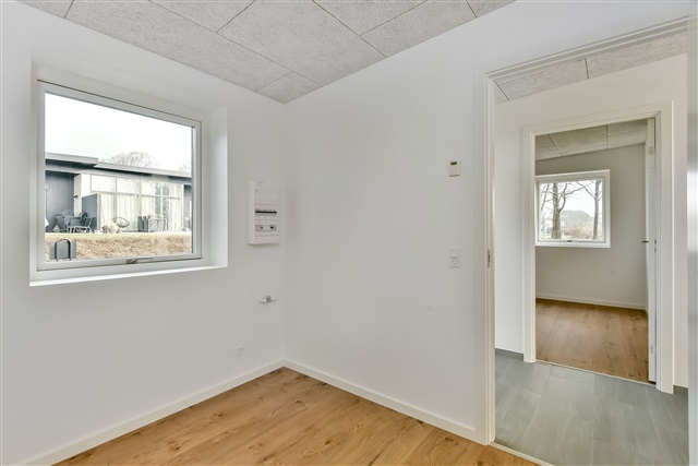 The location is approximately 4 kilometers from the center of Herning, with convenient bus service nearby. Situated within a green environment close to a nature center, a dog forest, and a swimming lake, the home also benefits from its proximity to a school and a sports hall that supports various community activities.
