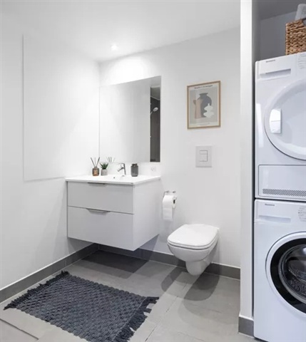 This bright and spacious one-bedroom apartment features a generous open-plan kitchen and living area, a large bedroom, and a private balcony. Additionally, the unit includes its own storage shed.The kitchen and living room form a modern, airy space where the stylish HTH kitchen cabinets complement the fully equipped setup with all necessary appliances. The living area is sufficiently roomy to accommodate a comfortable seating arrangement and a television. The bedroom is sizeable and pleasant, offering two built-in wardrobes alongside ample space for a large bed. The bathroom follows a simple, contemporary design and is fitted with a shower enclosure, toilet, washbasin, and storage options. Upon entering the apartment, you are welcomed into a hallway containing a fixed storage closet, which leads into the expansive main living area that seamlessly connects the kitchen and lounge. From the living room, there is direct access to a private balcony, spacious enough to fit a café table set, creating an inviting outdoor spot for relaxation.