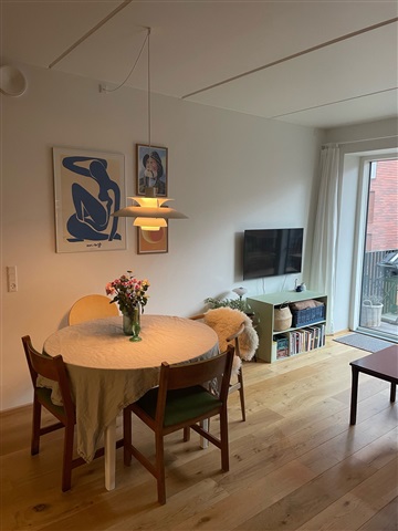 Welcome to the city's new, beautiful rental homes in the center of Aarhus. We are located on Thomas Koppels Gade, which you will find right next to the creative environment on Godsbanen. Here you will live in the city center - close to the train station, close to education and close to nature. In other words, in the middle of nowhere, close to everything, but still wonderfully secluded. In the apartments on Thomas Koppels Gade, the property company Olav de Linde has been picky about the details. The intention has been to build rental homes with a good environment that does not resemble traditional rental buildings. The bar is set high when it comes to quality. This is seen, among other things, in the choice of materials. Quality materials and beautiful outdoor space You can expect good quality and natural materials such as oak and natural stone. These are both beautiful and long-lasting materials. In most apartments, recycled bricks are used for selected walls, and there are also concrete walls, which create a unique atmosphere. The kitchens from HTH have integrated dishwashers and fridge-freezers. In addition, there are hobs, extractor hood and oven. The bathroom has a washing machine and dryer. There is also a cozy courtyard, which is landscaped and green, inviting you to relax, play and socialize. The apartments are located close to good shopping opportunities and with bicycle parking at the home or in the basement. There is also a storage room and underground parking.If you want to read the description in its original language that is also possible. Read original description
