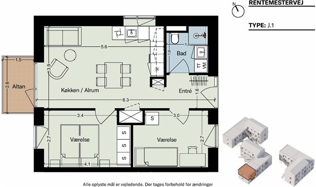 Step inside this charming apartment featuring a spacious and bright open-plan kitchen and living area that opens onto a balcony, providing a perfect spot to enjoy the summer months. The accommodation includes a large bathroom equipped with a toilet, a shower niche, and a washer-dryer unit, alongside two invitingly light-filled bedrooms.The building offers all residents either a terrace or balcony, in addition to shared rooftop terraces providing communal outdoor space. Situated within the courtyard of Møntmesterhus, the surroundings promise a vibrant and ever-changing atmosphere. The apartments vary significantly in size, layout, access, and location, encouraging a diverse community of residents. Complementing the properties, there will be a café or shop facing Rentemestervej.