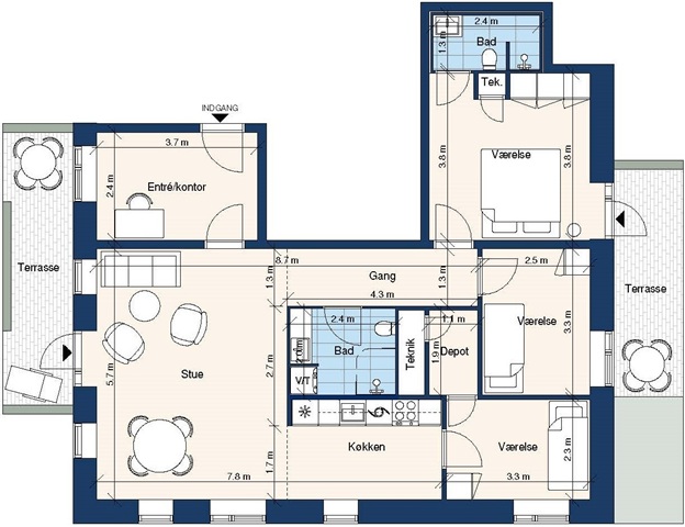Bærvænget, 119 m2, 4 rooms, 15,000 kr.