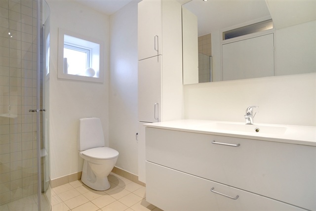 Department 51 offers a selection of family homes located in Aabybro, showcasing various residential options built over different years. Some houses date back to 1982 and feature bathrooms equipped with underfloor heating, stylish built-in wardrobes, a shower area enclosed by a curved glass door, and tiled floors extending into the shower. The kitchen, which is open to the living room, possesses a traditional appearance with painted cabinet doors. Meanwhile, youth apartments constructed in 1994 along Bindeleddet include bathrooms tiled in white, and kitchens finished with white laminate surfaces. Water consumption costs are incorporated into the rent, whereas heating and electricity expenses are billed separately by the utility providers.The housing complex comprises several building clusters with diverse characteristics. Torvestræde, an apartment building erected in 1992 within the town center, provides family residences alongside wheelchair-accessible units featuring elevators and threshold-free entrances. Surrounding this property are pleasant green spaces furnished with picnic table-and-bench sets, a feature also present around Østergade’s residential building from the same year, which primarily consists of youth housing. Additionally, the neighborhood includes a dozen terraced older-persons’ homes built in 1979 and refurbished in 2001. Both Østergade and Torvestræde accommodate shared bicycle shelters.