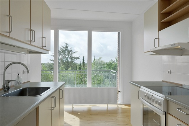 Hjørring Department 52 is situated within a tranquil urban setting characterized by a distinctive and pleasant ambiance. The residences available here are notably bright, each featuring either a balcony or a garden space. Solid beech parquet floors run throughout, and every bedroom is fitted with built-in closets. The bathrooms include tiled floors and walls, equipped with showers. Kitchens vary in layout but consistently showcase white cabinetry accented with beech trim. Ground-floor apartments come with a small garden, while units on the first floor and above all have balconies. Notably, the four-room apartments benefit from two balconies, accessible from both the living room and the bedroom. Water consumption is billed monthly in advance by the landlord, whereas heating and electricity are charged directly by the utility providers.This section was formed in 2016 through the merger of six smaller departments. "Buen" consists of three curved blocks, each four stories tall, topped with smoothly rounded roofs, creating a vibrant atmosphere close to one of Hjørring's lush green spaces. Residents have access to a shared bicycle shed, expansive lawns, and a communal terrace furnished for outdoor use. Seven carports are available for rent through a waiting list. Store Kirkestræde is located on a quiet dead-end street in a peaceful neighborhood near the town center. Buildings range from three-story structures constructed in 1960, featuring bright indoor corridors where residents often gather by benches, to single-story row houses built in 1976. Together, these buildings form a square enclosing a sheltered common garden, an inviting spot where summer afternoons are spent enjoying coffee beneath sun umbrellas.