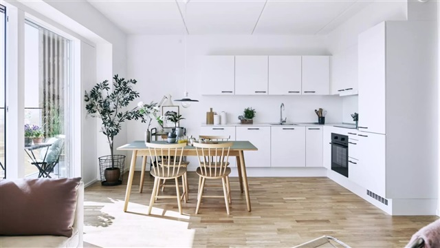 This two-room apartment features a generously sized bedroom equipped with built-in wardrobes, alongside a bathroom designed with a timeless, minimalist aesthetic. The bathroom includes tiled floors and a tiled shower area, underfloor heating, and a laundry stack. Adjacent to the living room, there is a modern white Invita kitchen. Access to a southwest-facing balcony is provided directly from the living space.The residence is outfitted with attractive lamella wood flooring and benefits from underfloor heating throughout. Tenants have the option to apply for permission to keep one pet, subject to the landlord's approval.