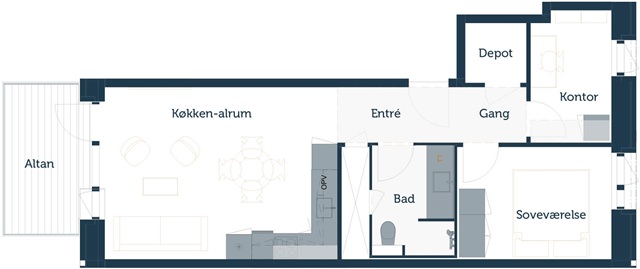 The apartments at Terrassen in Kirkebjerg Søpark, available with two to four rooms, offer a living environment suited for singles, families with children, and seniors alike. Carefully designed contemporary layouts maximize the use of your space. The centerpiece of each home is a spacious kitchen-living area that opens directly onto a private balcony or terrace, featuring views facing either south or west. Additionally, residents benefit from convenient parking options provided by two parking garages located within the neighborhood.