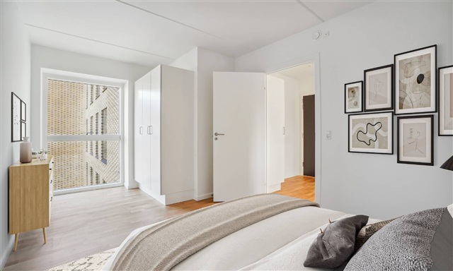 The neighborhood of Fælledkarréen places you in immediate proximity to Fælleden, where nature blends seamlessly with daily life. The area includes amenities such as nurseries, kindergartens, and a library, along with schools and a gymnasium. Opportunities for outdoor activities are abundant, with campfires, designated campsites, shopping facilities, and a network of nature trails forming an integrated environment. From dawn until dusk, the natural surroundings offer a rich and immersive experience.