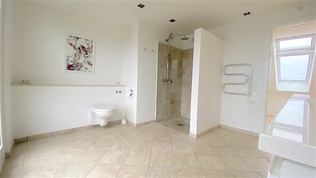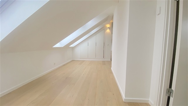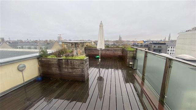 This elegant penthouse apartment is located on the sixth floor, accessible by elevator, and features plank flooring and underfloor heating throughout. It offers access to two spacious terraces, both providing impressive views over Copenhagen and the Lakes. Situated just a five-minute walk from Nørreport Station, which includes S-train and Metro connections, the location is highly convenient.Inside, the apartment boasts a large living room flooded with natural light and an exit to one of the terraces. The well-equipped kitchen includes all necessary appliances, dining space, and leads to the second rooftop terrace where one can enjoy exceptional panoramic city views. The residence contains one sizeable bedroom accompanied by two smaller bedrooms. Additionally, there is a generously sized bathroom with a shower enclosure and heated towel rail, as well as a utility room equipped with a washing machine and dryer.