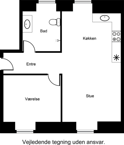 Rolfsgade, 54 m2, 2 rooms, 5,900 kr.