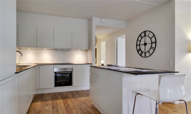 Residence in Amalieparken means being well connected to schools, shopping options, and the S-train. There is also an attached daycare facility nearby. For recreational pursuits, residents can take advantage of the local golf club and riding stable, while those interested in water activities will find the beach within easy reach, complete with a water ski club and swimming opportunities. The residential park area is beautifully landscaped, featuring playgrounds and picnic table sets.
