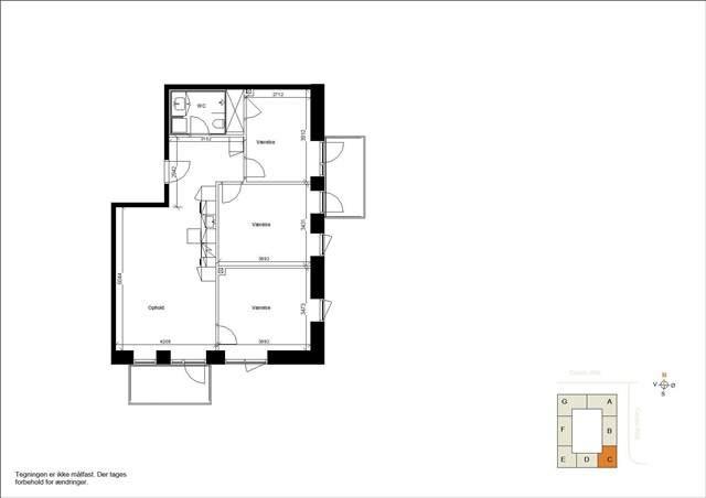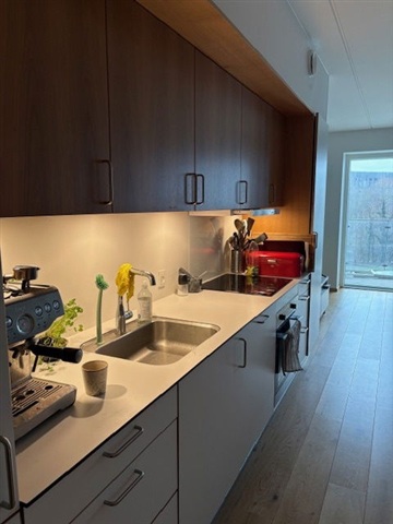 The communal areas at Maltgården offer a welcoming environment. Upon arrival, residents encounter a courtyard designed as a green, landscaped retreat within the urban setting, perfect for socializing or enjoying quiet moments. The complex includes an underground parking garage where residents may rent parking spaces or store bicycles. Additionally, each apartment comes with its own storage room in the basement. Altogether, Maltgården provides a well-considered home base within the Ringgaden for students, families, singles, or seniors alike. Floor plans are indicative, and the photos shown are from the model apartment at Ceres Allé 11E, 1.1, measuring 78 square meters.